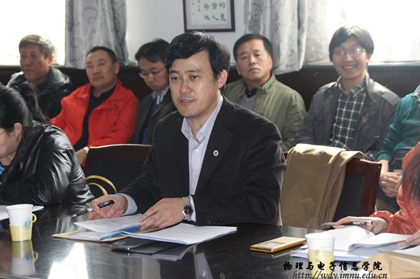 本网讯 2016年3月24日下午,由我校宣传部部长张宝成、科技处副部长咏梅、组织部党校办公室主任荣丽军、学生处心理辅导中心主任刘宏旭组成的考核小组莅临我院并出席了全体教职工会议,由党总支副书记何小龙主持会议。会议开始,介绍并欢迎各位考核组老师出席本次会议。会议第一项,首先由我院党总支副书记何小龙老师做党建工作述职,述职中,何老师就我院党总支基本情况、基层党建履职情况以及今后努力方向和改正措施进行了详细的汇报。其中在加强学院党员培养的问题上提出了明确要求,并指出学院应吸引更多低年级的学生申请入党,将更多新时代下的新活力带进我院的党总支中。会议第二项,由我院院长特古斯教授做班子工作总结,特院长首先介绍了学院的基本概况,随后就我院在“一二五”期间的工作做了重要汇报,对学院教师进修情况、招生及研究生情况、教学资源建设等方面做了详细介绍。会议第三项,学校考核组发放考核意见表,本着公平、公正,公开的原则,每一位教职工都认真的填写了表格,会议最后,张部长肯定了我院长期以来的工作并提出新的希望。