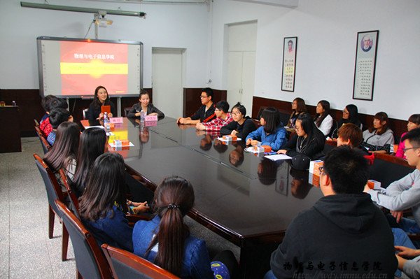 2016年4月1日,我院在物理楼会议室召开“驻校蹲班”——谈心谈话交流会,校团委楠玎老师、我院团总支书记萨其尔老师以及15级科技班同学参加本次会议。早在上周一,楠玎老师就与15级科技班同学一同组织了一次有关“驻校蹲班”的班会,班会中楠玎老师向同学们传达了2016年我校开展“驻校蹲班”的通知,讲解了“驻校蹲班”的深层意义,并详细介绍了围绕其展开的相关活动和工作要求。今天,楠玎老师为了更加深入的了解了学生思想动态和学习生活状况,从而与同学们更好地交流沟通,特别召开本次谈心谈话交流会。会上,楠玎老师向同学们了解了在日常的大学生活中、学习中等多个方面的近况和出现的问题。老师对同学们所反映的问题做了认真的记录,同时鼓励同学们积极地参与到日常学院开展的各类活动中,在活动中不断地提升自己。通过本次交流会,老师们对同学们的思想动态和学习生活状况有了更加深入的了解,为日后更加全面地加强青年学生群众工作打下了坚实的基础。