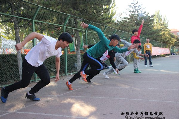 本网讯 2015年10月18日上午,在我校的东操场,伴随着庄严的国歌与嘹亮的入场口号,我院的第27届秋季运动会拉开帷幕。我院院长特古斯教授,党总支副书记何小龙老师,副院长吉日嘎拉教授,团总支书记萨其尔老师等多位领导、老师及各班班主任共同出席此次院运会。入场式上,国旗队、彩旗队、花束队、裁判代表方阵、各班的方阵排成整齐的队列,迈着雄健有力的步伐走过主席台。在运动员代表、裁判员代表庄严宣誓后,特古斯院长致开幕词,并由何小龙老师宣布本届运动会正式开幕。随着运动会开幕式的结束 ,吉日嘎拉教授打响了本届院运会的第一枪,运动会各项赛事开始有序进行。