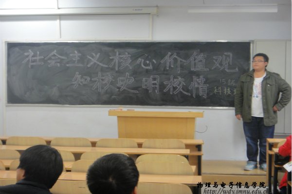 本网讯 为积极迎接我校本科教学审核评估工作的开展和营造良好的迎评氛围,积极响应校团委关于开展“知校史,明校情”主题教育活动要求,全面围绕社会主义核心价值观开展相关活动。我院决定在各班级开展以“知校史、明校情”为题的主题班会并持续深入开展有关社会主义核心价值观的系类团日活动,届时,我院学生会宣传部将对各班活动举办情况进行持续跟进报道,积极传递活动举办成果,营造浓厚的活动气氛。