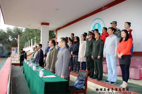 2015年9月11日上午8:30,我院15级新生于赛罕小区西操场参加了我校举办的2015级新生开学典礼暨军训动员大会。首先进行升旗仪式,伴随着嘹亮的国歌声,五星红旗冉冉升起,飘扬在师大的天空上。随后我校党委书记傅永春教授进行讲话,话语积极向上,激励15级新生们在军训期间拿出最好的状态。相信,军训期间15级新生们必将朝气蓬勃,取得佳绩。