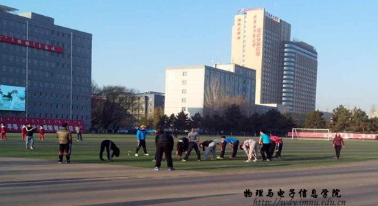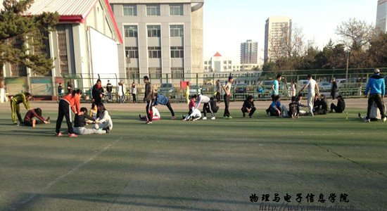 本网快讯 2015年4月9日一早,我院运动员于东操场在三名教练李宁、高毓、张云龙的带领下开始了新一天的夏训。迎着清晨的阳光,我院健儿积极听从教练指挥,刻苦训练,同学之间配合默契,在操场上洒下了拼搏的汗水。相信经过此次夏训的磨练,我院健儿不仅会在身体素质上有所提高,而且必将在我校第五十三届校运动会上取得骄人成绩。