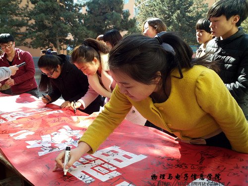 本网快讯 2015年3月10日中午,我院继续举办雷锋日系列活动。这次我院来到了食堂门口,向广大师生发出倡议“学雷锋 树新风 扬正气 比奉献”。伴着清新悦耳的音乐及火红的标语,本次活动吸引了众多前来食堂就餐同学的目光,学生会工作人员热情的递上签字笔,同学们在横幅上纷纷留下自己的名字。随着活动的进行,签名现场人潮涌动,同学们积极投入到活动当中,用心感受着身边的雷锋精神。期间,主席们也到达现场,指出活动中可能出现的问题以确保活动顺利进行。此次雷锋日系列活动的成功举办,使全院同学认识到了学习雷锋精神的重要性同时也扩大了我院雷锋日活动的宣传范围也推动了我院后续雷锋日系列活动的开展。
