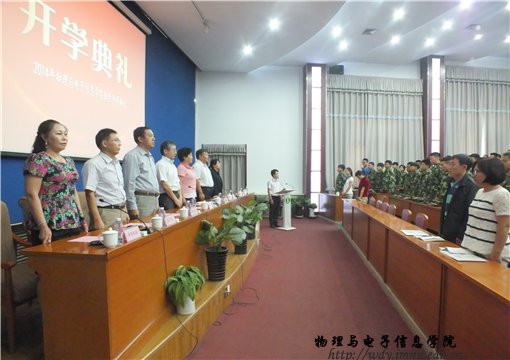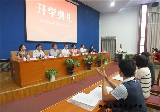 2014年9月5日上午十点,我校报告厅里华灯璀璨、座无虚席,气氛热烈而庄重,我院领导同2014级新生们相聚在一起,共同开启大学圆梦之门——2014级新生开学典礼。我院党总支书记阿梅老师、院长特古斯教授、副院长吉日嘎拉教授、物理系主任张敏老师、电子系主任梁学军老师、实践创新部主任曹永军教授、办公室主任斯琴高娃老师、学工办宋志强老师出席典礼;其中阿梅书记、特古斯院长发表讲话,宋志强老师主持典礼。