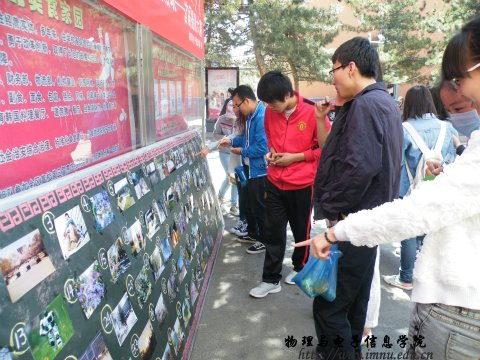 为了让我院同学更好地融入校园、发现生活,定格同学们身边的美丽瞬间,着重刻画大学生朝气蓬勃的青春风采,展现同学们校园生活学习的乐趣,于4月29日中午11点30,我院举办的“青春印象,和谐校园”系列文艺活动——首届摄影大赛海选在食堂门口举办了大众评选活动。