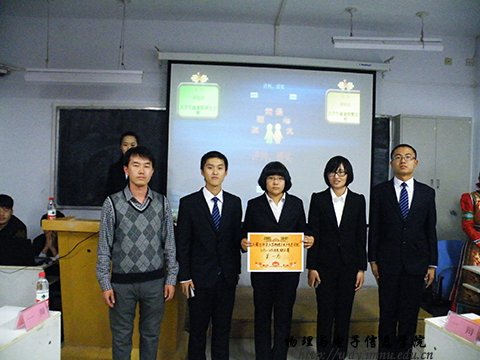 比赛结束后,宋志强老师亲切上前向赢得此次活动的一二三名的辩论团队表示祝贺,并颁发奖品,并与参与此次活动的全体工作人员合影留念。期待明年物理与电子信息学院辩论赛更上一层楼,希望同学们为不断开创我院工作新局面而努力奋斗!