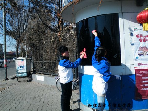 当天,我院在校园外进行了义务清洁活动。本次学雷锋活动中,我院志愿者们热心地对校门口警卫厅进行了细心的清洁,在清洁过程中,同学们精心细致的打扫着每一个角落,深刻践行着为人民服务的良好雷锋精神,同时值班交警对志愿者的践行雷锋精神表示深深感动。