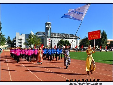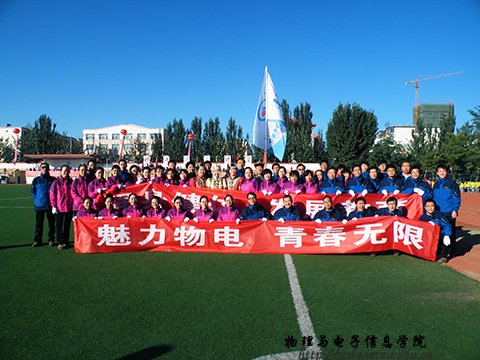 9月29日,我校2013年教职工运动会在赛罕校区西操场隆重举行。开幕式上,我院教师穿着统一的服装,迈着整齐划一的步伐,在经过主席台时,高喊口号:“魅力物电,青春无限。强身健体,发展教育”,赢得了在场人员的阵阵掌声。