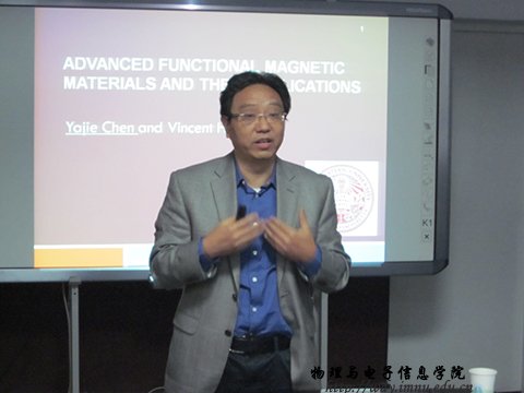 10月12日美国东北大学电机与计算机工程系著名磁学专家Vincent Harris教授和陈亚杰教授对我院进行学术访问,并分别作了题目为 “A review of recent research activity in rare earth free permanent magnet” 和“Advanced functional magnetic materials and their applications”的学术报告。我院相关专业的师生参加了此次报告会议。