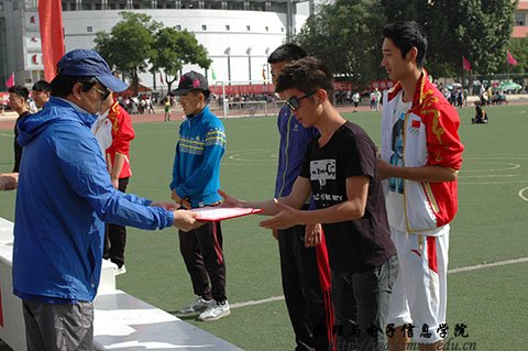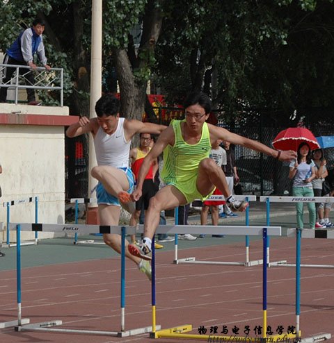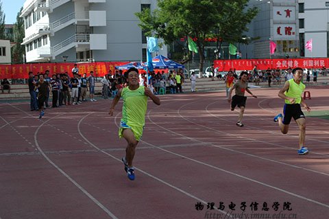 在今天的比赛中我院健儿再创辉煌:哈布日获得女子400米栏第一名、萨日娜获得女子跳高第二名、顾啸天获得九项全能第一名、刘国玉获得男子铅球第八名、张振元获得男子110米栏第六名、丁泽民获得男子400米栏第六名、男子4*100米获得第四名。