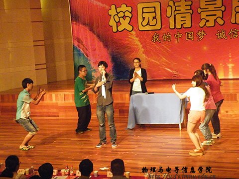 经过前期两个校区的角逐,共有8个不同学院的节目入围此次决赛。在比赛中我院压轴登场,来自11级工程2班的鲁博、李丹阳,12级科技班的王诗莹、苏丽芳,12级工程1班的张蓝方,12级工程2班的马骁,12级工程3班的安鸿磊凭借着夸张的形态表演和诙谐的语言引得场下笑声不断。并用精彩用心的表演、绚丽的灯光和音效传达着“诚信”深刻涵义,给在场的观众与评委们留下了深刻印象。经过激烈的角逐和公正的评判,我院表演的《诚信》凭借出色的演出、精彩的剧情以9.14分的优异成绩取得本次大赛的第二名。