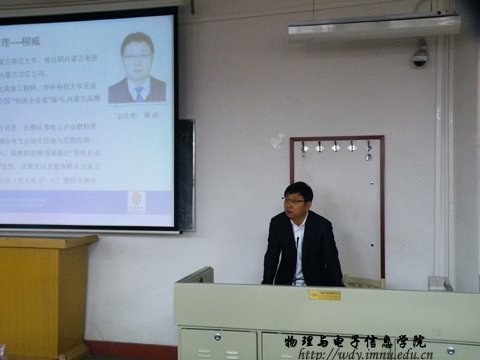 在2013年毕业季到来之时,我院大四的学生都非常渴望此次的讲座。在热烈的掌声中,柳威总经理开始了这次讲座,向学生讲授了创业的渠道,和自己的亲身经历,让学生合理安排自己的生活方式,铺填以后的道路,当前的就业形势要求更多有条件的大学毕业生选择创业之路。