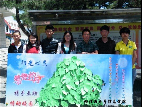 迈着春天的步伐,带着初夏的暑热,为丰富我院文化建设内容,提高我院学生心理健康教育工作水平,探索多种形式的学生心理健康教育方式,努力强化学生的心理素质,2013年5月20日我院在学校食堂门前开展了感恩五月主题教育活动。