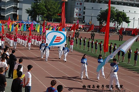 2013年5月30日8:00,我院同学在赛罕校区参加了我校第五十一届田径运动会。在热烈喜庆的开幕式方阵中,各个学院迈着整齐的步伐经过主席台,接受检阅。其中,我院以别具匠心的彩旗队和创意个性的滑翔伞掀动了整场的高潮,队员们昂首阔步,意气风发,尽情挥洒着青春活力,嘹亮的口号响彻云霄,赢得了现场师生们的声声赞叹,同时也展现出了我院师生团结一致的合作精神。