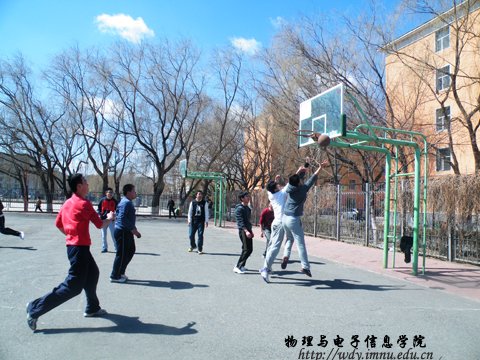 2013年3月23日中午12:30,我院在西篮球场举办了春季篮球赛初赛二场比赛。晋级此次比赛的班级有11级工程2班对战12级科技班、11级工程1班对战11级物理汉班、12级工程1班对战12级物理蒙班、10级物理蒙班对战12级物理汉班、10级工程2班对战11级科技班、11级工程3班对战12级工程3班、10级工程1班对战12级工程2班、10级工程3班对战10级科技班。
