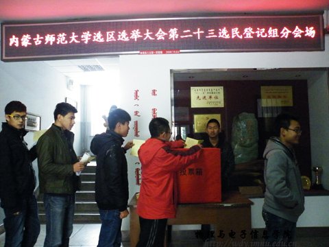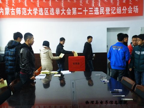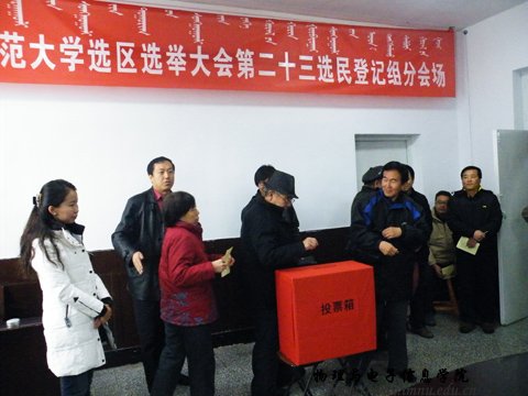 2012年11月12日上午9点,我院在物理楼会议室举行赛罕区内蒙古师范大学人民代表选举活动。全体教职工与学生参加了此次活动。由党总支书记阿梅老师主持 。