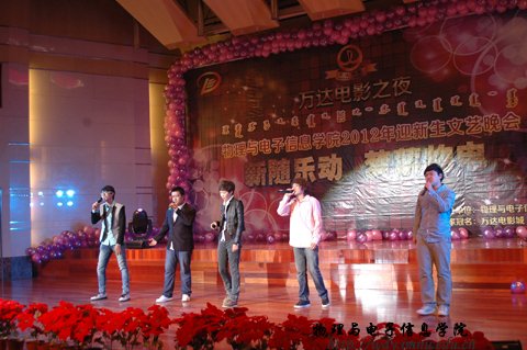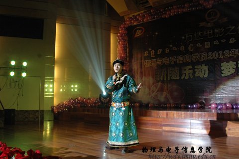 2012年11月18日,我院在逸夫楼音乐厅成功举办了“新随乐动,梦萦物电”2012级迎新生文艺晚会。参加此次晚会的领导有物电院党总支书记阿梅老师、院长特古斯教授、副院长刘美玲老师、党总支副书记何小龙老师、以及赞助商代表、团总支学工办老师、各班班主任。