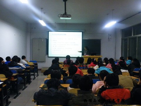 为了激发学生的创新思维,我院学工办邀请我院实践创新部副主任张丽娜老师于2012年11月20日晚7:30在田楼111教室举办了“实践创新与个人成长”系列讲座。为同学们“浅谈科技创新”。 此次出席讲座的老师有呼和老师,侯爱玲老师。