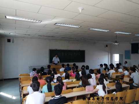 2012年8月28日10:00,我院在信息楼第六公共教室组织召开“物理与电子信息学院电子系09级专业实习动员大会”。参加会议的领导有我院副院长吉日嘎拉老师、部分在职教师以及09级物理系的全体学生。