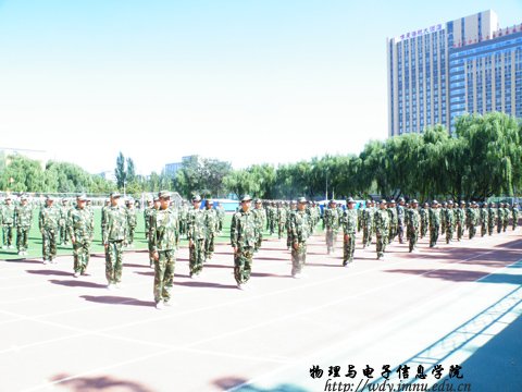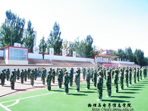 2012年9月3日早上八点半,2012届大一新生在校园西田径场上集结列队,隆重举行大一军训动员大会,在我院领导与教官们的关注下,开始书写作为一名大一新生的新篇章。全体新生以认真饱满的态度聆听了讲话,迎接军训的来临。会后,各班同学在教官的带领下前往军训地点,开始军训。