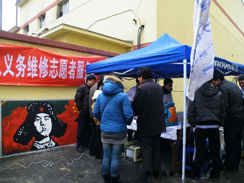 2012年3月4日,为实践雷锋精神,我院家电义务维修青年志愿者服务队,在学工办王伟老师和实践创新实验室郭小平老师的带领下走进世纪御园小区为居民进行家电义务维修活动。