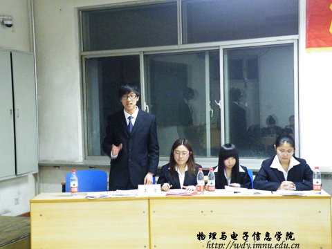 2012年3月8日晚8:30,我院在田楼326和223教室分别参加了学校举办的“第6届盛乐杯全校大学生辩论赛”汉语组和蒙语组的初赛。