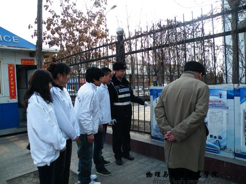 为了弘扬雷锋精神,我院举行“学习雷锋、共创和谐校园活动”。2011年3月1号下午,我们首先来到了交警岗台,为在日晒雨淋中坚守岗位、不辞辛劳地保障市民安全,维护社会治安的交巡警们送上了纯净水,表达心中的一份敬意和感谢。