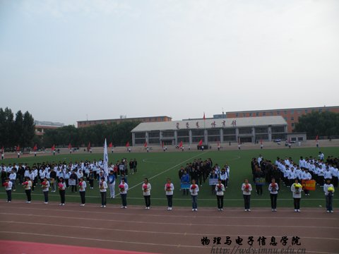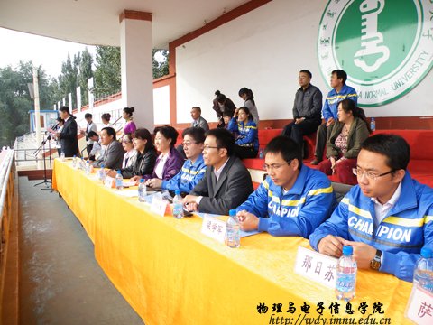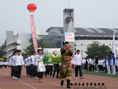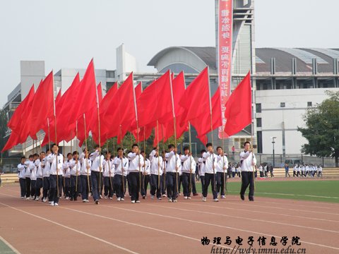 9月27日上午8:00,我院在西操场隆重举办第23届田径运动会。党总支书记阿梅老师,副院长刘美玲老师,党总支副书记何小龙老师,自治区功能材料物理与化学重点实验室主任特古斯教授,办公室主任斯琴高娃老师,物理系副主任那日苏老师,电子系主任梁学军老师,创新实验室主任曹永军老师,团总支萨其尔老师等院领导以及各班级班主任出席了运动会开幕式,并与全院师生一起观看了比赛。运动会开幕式由学工办王伟老师主持。