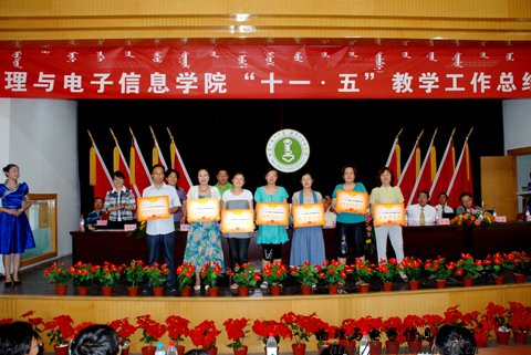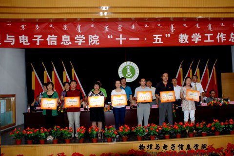 7月14日下午,我院在生物楼报告厅隆重召开 “十一 • 五”教学工作总结表彰大会。副校长照日格图教授,教务处处长王来喜教授,研究生院副院长穆城利老师,计算机与信息工程学院党总支书记辛智俊老师应邀出席了本次大会,学院全体领导、教职工、以及研究生本科生近五百人参加了大会。会议由副院长吉日嘎拉老师主持。 会上,由院长张伟教授代表学院做“十一 • 五”教学工作总结报告,报告从教学管理制度建设、质量保障与监控体系建设、师资队伍建设、实验室建设、教材建设、教风与学风建设、实践创新文化氛围营造、实习实践基地建设以及研究生教育等十个方面回顾和总结了学院在 “十一 • 五”期间教学工作取得的成绩和经验,并表彰奖励多年来辛勤耕耘、努力工作、锐意改革,在教学与管理一线做出突出成绩的教职员工:分别授予松林等14位同志“教学成就奖”,授予斯琴巴特尔等5位同志“蒙语教学先进个人” 荣誉称号,授予刘淑琴等14位同志“教学骨干奖”,授予张丽娜等3位同志“教坛新秀奖”,授予斯琴高娃等6位同志“教育管理先进个人” 荣誉称号,同时,还表彰奖励学风建设先进班集体与先进个人。颁奖仪式后,获奖教师代表和学生代表相继发言。 照日格图副校长代表学校对本次大会的胜利召开表示祝贺,对获奖的教师,同学进行了勉励,并肯定了学院在“十一 • 五”期间教学工作取得的成就,还对“十二 • 五”教学工作进行指导并寄予厚望。 在这承前启后、继往开来的2011年,学院隆重召开“十一 • 五”教学工作总结表彰大会,为学院“十二 • 五”教学工作营造开局之势,我们坚信,“十二 • 五”期间我院教学工作必将再上一个新台阶,人才培养质量再创一个新水平。
