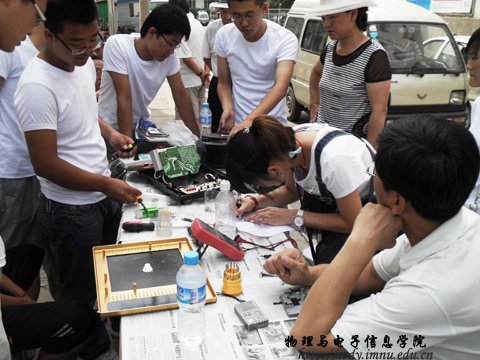 7月23日早晨,我院“科技走进社区”家电维修服务团的志愿者带着工具兴致勃勃的来到了暑期社会实践活动的第三站——内蒙古师范大学家属小区。随后,他们将要在师大家属区进行为期一天的家电维修志愿服务活动。