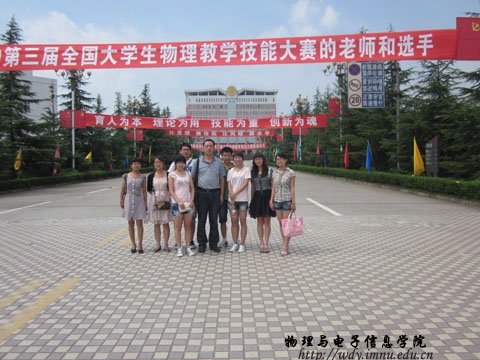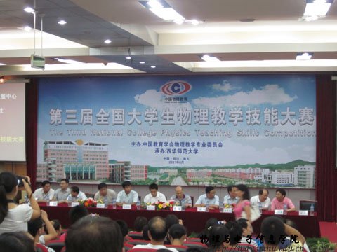 2011年8月3日至8月4日,第三届“人教社杯”全国大学生物理教学技能大赛在四川南充西华师范大学举办。本次大赛共有来自北师大、华东师大、华中师大、山东师大等全国90所高校的801名师生参加。在学校教务处的大力支持下,我院选派了08级物理汉班的8名本科生参赛,选手们准备充分,教学重难点突出,说课清晰流畅,讲课生动有趣,课件制作精美,实验新颖、可操作性强,教态自然大方,获得评委和观众的一致好评。最终,黄瑛、魏志娟、程帅3人获得一等奖,王长鸿获得二等奖,迟程、李远征、王聪、常凤4人获得三等奖,曹永军老师被评为优秀指导教师,为学校赢得了荣誉。比赛中我校也被评为优秀组织单位奖,这充分展示了我校学生扎实的教育教学专业功底和良好的精神风貌。