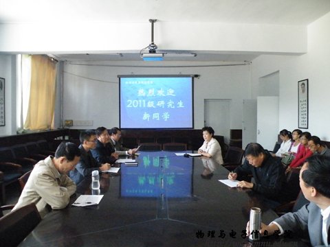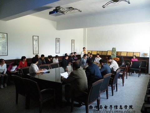 9月9日8:30我院在物理楼会议室召开了2011级研究生见面会,参加见面会的领导老师有院长张伟老师,党总支书记阿梅老师,副院长吉日嘎拉老师,党总支副书记何小龙老师,以及松林、杨立森、赵凤歧、李瑞芳、曹永军五位研究生导师。