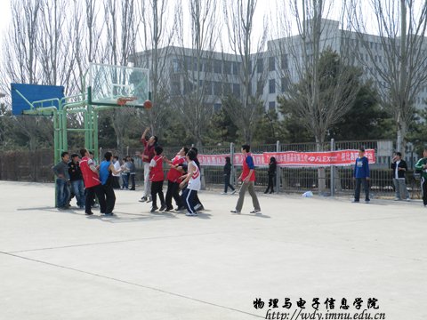 3月31日中午12:20,由学院学生会体育部组织的班级篮球友谊赛在东篮球场进行第三场初赛,比赛G组是08汉对战08工二,H组是09汉对战08工一,I组是09工一对战10工三。