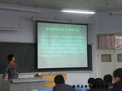 2010年11月18日下午4:00,在田七共,我院邀请法政学院副院长李春晖老师为本期入党积极分子进行了培训,题目为“法治与德治”。团总支书记何小龙老师主持。本次培训主要介绍了: