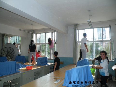 新学年,新气象,新风貌,为了以崭新的姿态迎接新的学期,热情的迎接2010级新生的到来,学院安排全体学生开展了一次大扫除活动。此次扫除活动共有十三个班级四百多人参加,将物理楼所有实验室、办公室、资料室、会议室和楼道走廊等扫除的干干净净,参加劳动的所有同学热情高涨,互相协助,配合默契,很快将一个崭新的环境呈现在了眼前。实验室和办公室原本积尘很厚的玻璃窗变得清澈明亮,杂乱无章的楼道环境变得井井有条,就连空气中也似乎弥漫着清新气息……