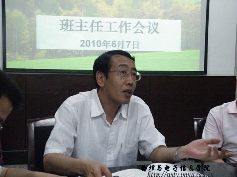 6月7日下午,我院在学院会议室召开了班主任工作会议,学院党总支阿梅书记、张伟院长参加并做了重要讲话,学院党总支副书记兼副院长辛智俊老师主持会议。学院团总支、学工办老师及全体班主任老师参加了会议。会议主要对各班级包括毕业班学生的安全、稳定等问题做了强调。