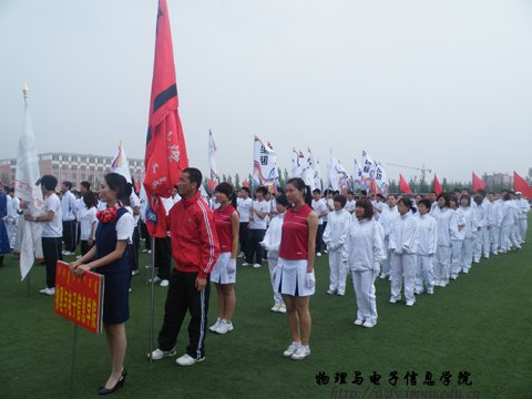 我校巡视员王希明致开幕辞,他指出,体育工作是学校教育事业的重要组成部分,发展体育事业,增强人民体质,是全面建设小康社会,促进人的全面发展的必然要求。进一步加强大学生体育工作、增强大学生体质,对于全面落实科学发展观,深入贯彻党的教育方针,大力推进素质教育,培养中国特色社会主义事业的合格建设者和接班人,都具有十分重要的意义。本届运动会不仅是我校大学生体育运动水平的一次大展示,也是对师生精神面貌的一次大检阅,同时更是学校今后承担高水平竞技体育赛事的一次大练兵,必将进一步促进全校群众性体育运动的蓬勃开展。他希望全体运动员、教练员、裁判员和工作人员,要严格遵守竞赛规则,认真履行职责和义务,秉承重在参与、锻炼身体、增强体魄的宗旨,发扬顽强拼搏、永争第一的精神,在赛场上团结合作,尊重裁判,超越自我,不断创造优异的成绩。