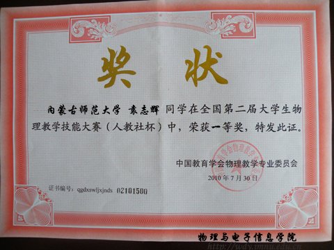 大赛共有来自全国27个省市、自治区的78所师范院校的512名选手参加。我校选派物理与电子信息学院九名学生代表我校参加了比赛,其中本科生八名,研究生一名。经过激烈角逐,最终我校学生喜获一等奖一名,二等奖一名,三等奖七名。此外,物理与电子信息学院教师万欣欣荣获“优秀指导教师奖”。