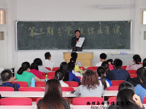 5月27日下午3:00,在田八共举行了我院分党校第三期入党积极分子培训班结业考试。考试由何小龙老师及党支部成员担任监考,本次考试旨在检验各积极分子在上党课期间所获得的成果。考试结束后在物理楼前大家合影留念。