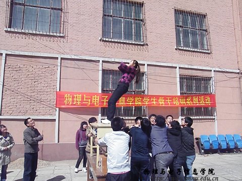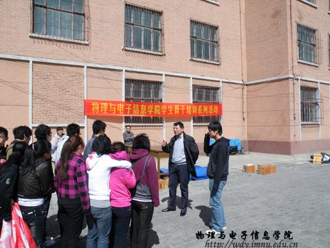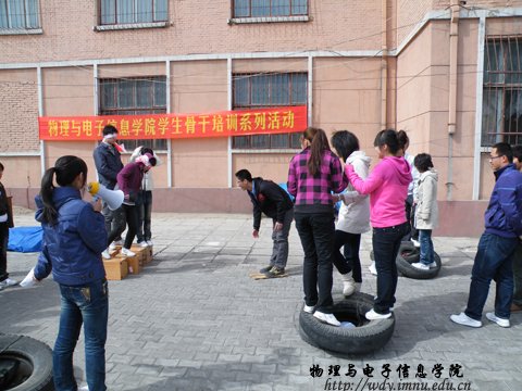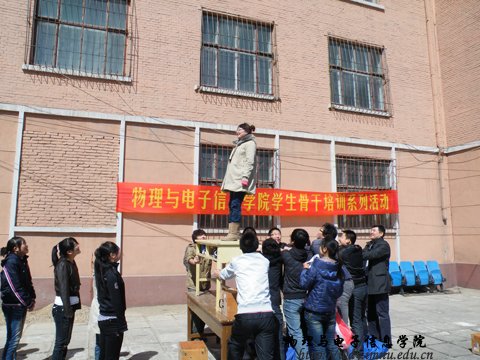 4月1日中午,我院学生会组织全体干部在物理楼后进行了学生骨干培训系列——心理行为训练活动。