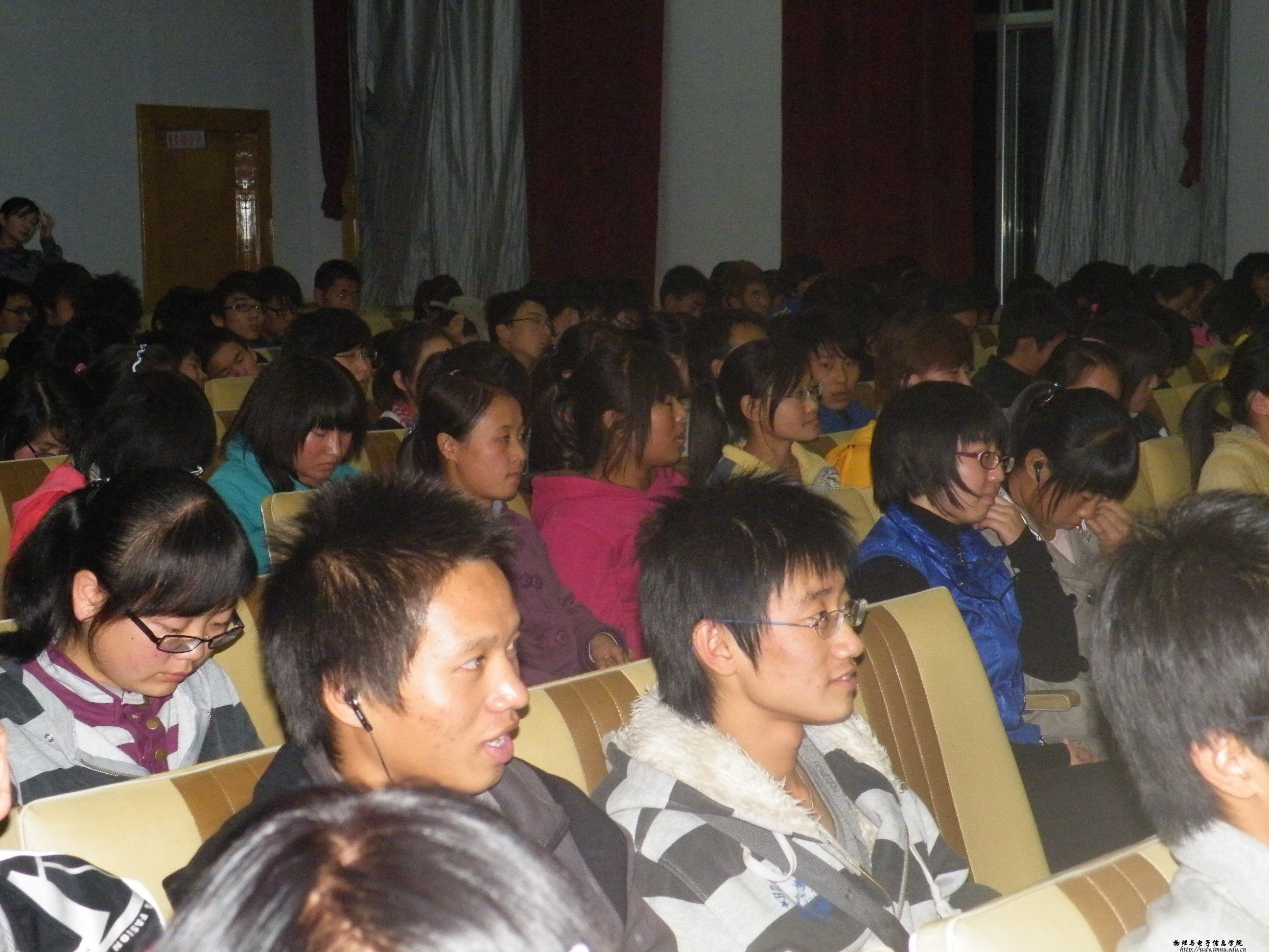 2009年10月27日晚,明亮眼镜店店长为我院学生进行有关眼睛知识的讲座,对于如何预防近视眼和假性近视进行了具体讲解,而且阐述了在何种灯光下学习才是对眼睛最有效的保护。此次讲座使学生对眼睛知识有了更深的了解,同学们纷纷表示在以后的学习和工作中要多注意保护眼睛。