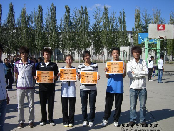 10月8日,09级工程3班与09级物理蒙班进行男子组篮球决赛,物理蒙班以57:45获胜。09级工程1班与09级物理蒙班进行女子组篮球比赛,09级物理蒙班以14:0获胜。男子组第一名09物理蒙班,第二名09工程2班,女子组第一名09科技班,第二名09物理蒙班。至此09级新生篮球赛圆满结束。明日将进行男子组第一名与学生会代表队的友谊赛,敬请关注。