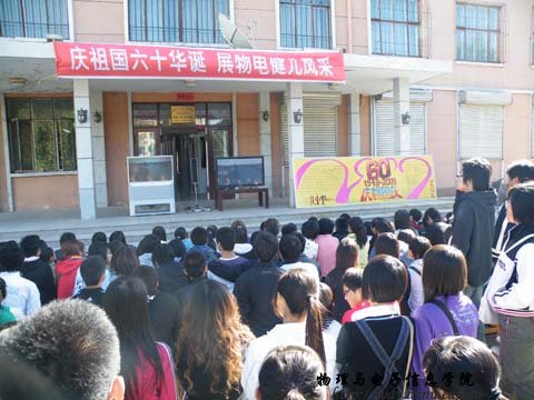 首都北京盛大的庆典活动不仅点燃了天安门广场数以万计军民的激情,也使电视机前的莘莘学子群情振奋、激情澎湃,为祖国60年的巨变齐感自豪。此次活动不但使同学们受到了爱国主义教育,也更加坚定了他们立志图强、报效祖国的坚定信念。