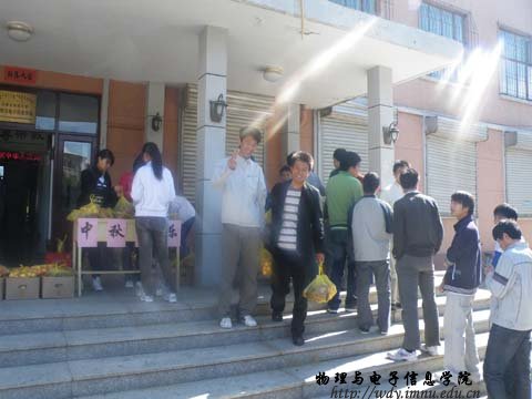 中秋佳节之际,10月3号上午,物理与电子信息学院在物理楼前举行中秋佳节慰问学生活动,使同学们深刻感受到我院领导和老师对学生们的关怀与温暖,激发了同学们刻苦学习,努力上进的精神。