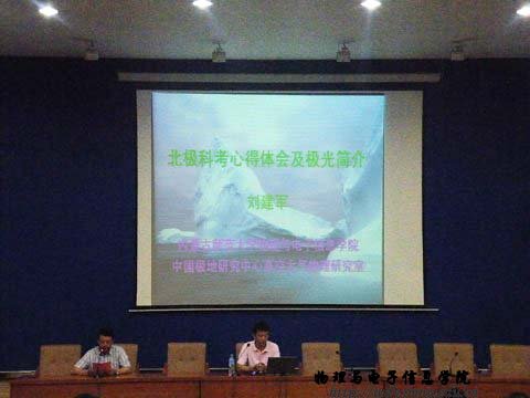 6月2日晚7点,在中国北极黄河站圆满完成科考任务的我院06级硕士生刘建军在信息楼学术报告厅为我院学生做了《北极科考心得体会与极光简介》讲座,学工办主任张伟老师主持了此次讲座,区内多家媒体报道此次活动。