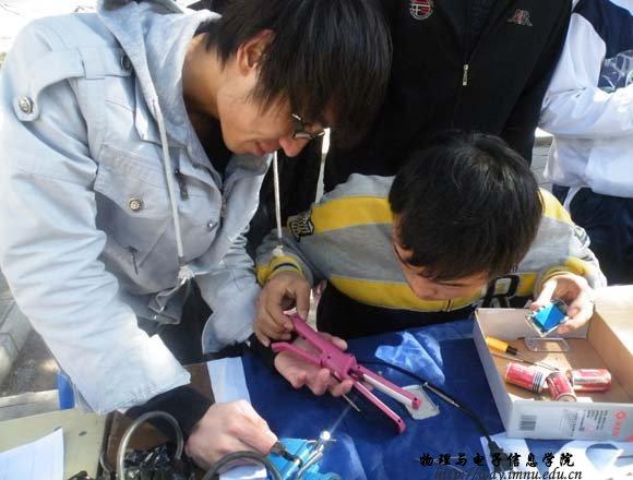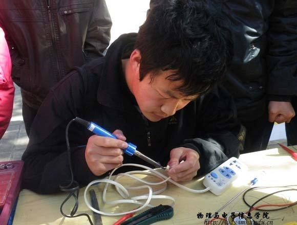 3月5日学雷锋日,我院积极响应学校号召,中午在北门展开了义务维修活动。同学们陆续将自己坏了小电器送到维修点,也有附近的居民将家里的电器拿来,纵然风很大,天气较冷,志愿者的手冻得都不好使,但他们依然坚持在维修场地,认真地维修电器。本次的活动不仅为同学们解决了实际的问题,也凸显我院将实践与学习融合在一起的学风。