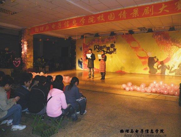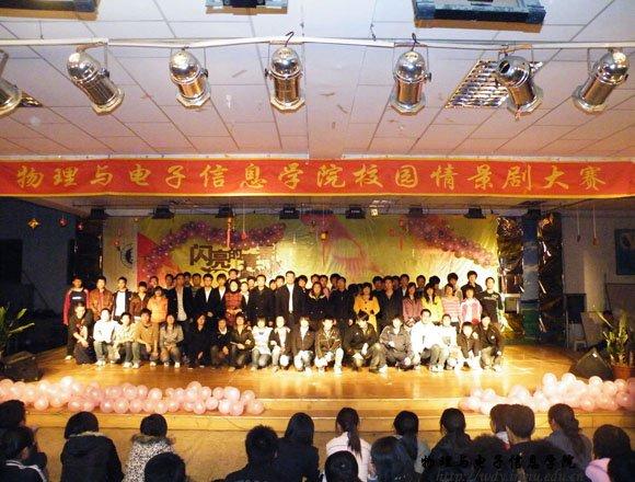 我院于11月2日晚7点在大学生活动中心举办了心理健康宣传月的重头戏——校园情景剧大赛。莅临点评的有物理与电子信息学院团总支书记何小龙老师,学工办副主任张伟老师,08级各班班主任以及大力支持我院活动的联想集团大中国区晋蒙分区业务督导杨晓丹女士。