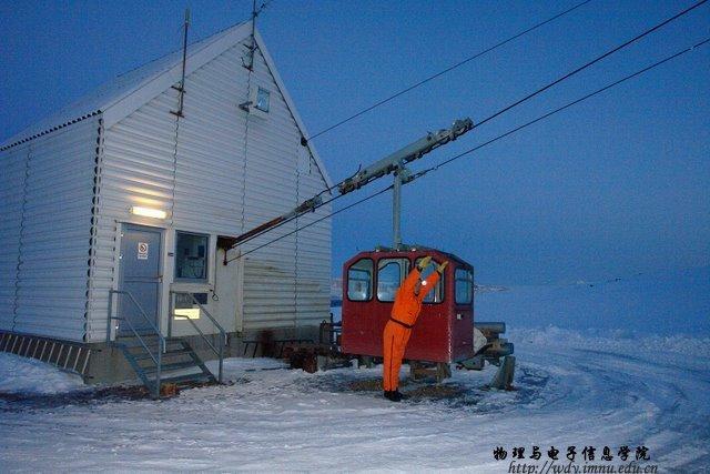 根据《2008年北极黄河站科学考察现场实施计划》,本次赴北极科考的项目名称为:“中国北极黄河站电离层观测(常规观测项目)”( Ionospheric observation at Chinese Arctic Yellow River station)。依托课题为国家自然科学基金重点项目:地球极隙区的电离层踪迹及其动力学过程研究,中国极地科学战略基金项目“极区电离层闪烁与不规则体特性研究”;其他项目:极区电离层闪烁特性研究。项目承担单位分别为中国极地研究中心、中国电波传播研究所、中科院地质与地球物理研究所。现场执行人共7人,其中,中国极地研究中心3人: 黄德宏、韩德胜(内蒙古师范大学物理与电子信息学院96届毕业生,现为中国极地研究中心副研究员,物理与电子信息学院兼职硕士生导师)、陈卓天;内蒙古师范大学1人:刘建军(内蒙古师范大学物理与电子信息学院2006级凝聚态专业硕士研究生);中国电波传播研究所2人:何绍林、袁亚平;中科院地质与地球物理研究所1人:宁百齐。