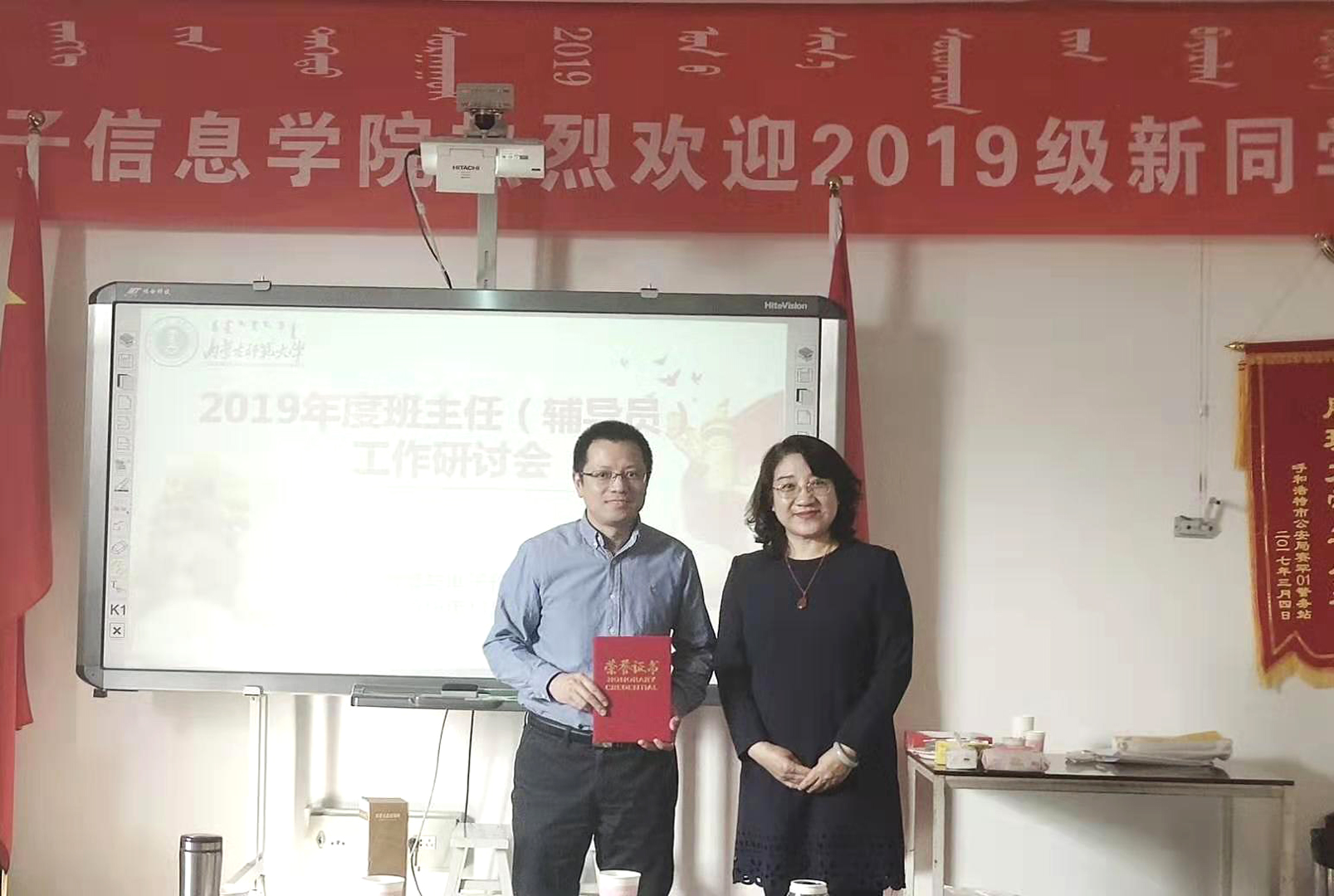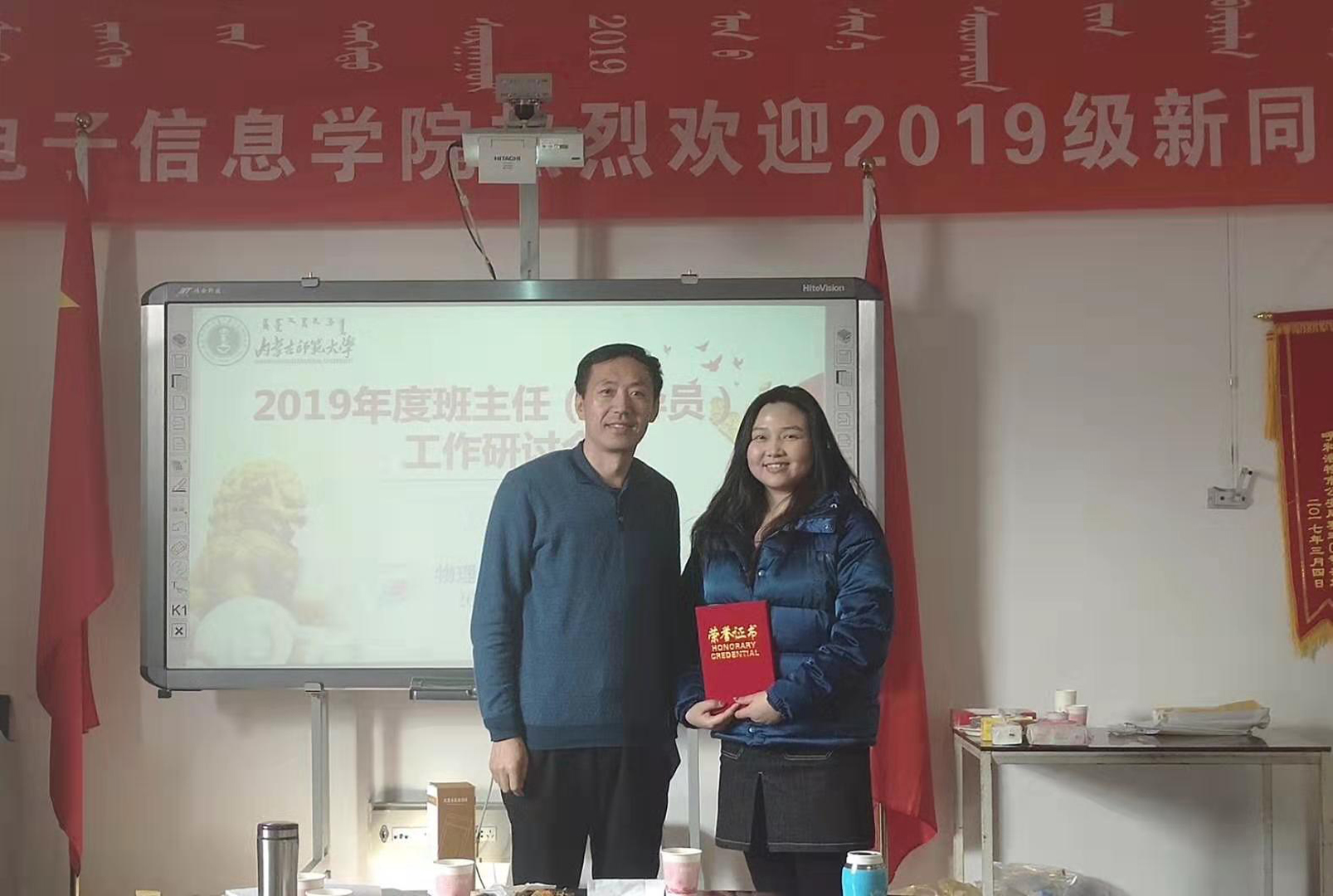 最后,刘美玲书记对此次活动做了总结,鼓励全体班主任、辅导员教师要克服困难,不断提高自己的教育水平,老中青教师要相互学习,相互交流,取长补短,在交流中收获,在收获中成长,积极构建“三全育人”氛围,真正做到“立德树人”。学院领导为获得2019年度校级优秀班主任、辅导员、优秀学生工作干部颁发了证书。