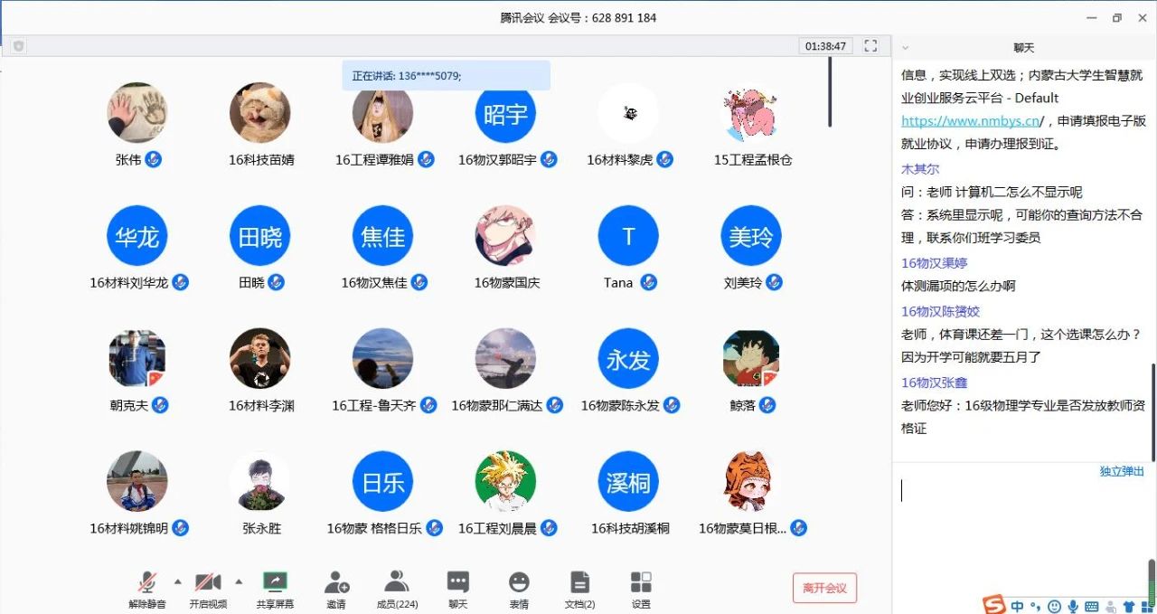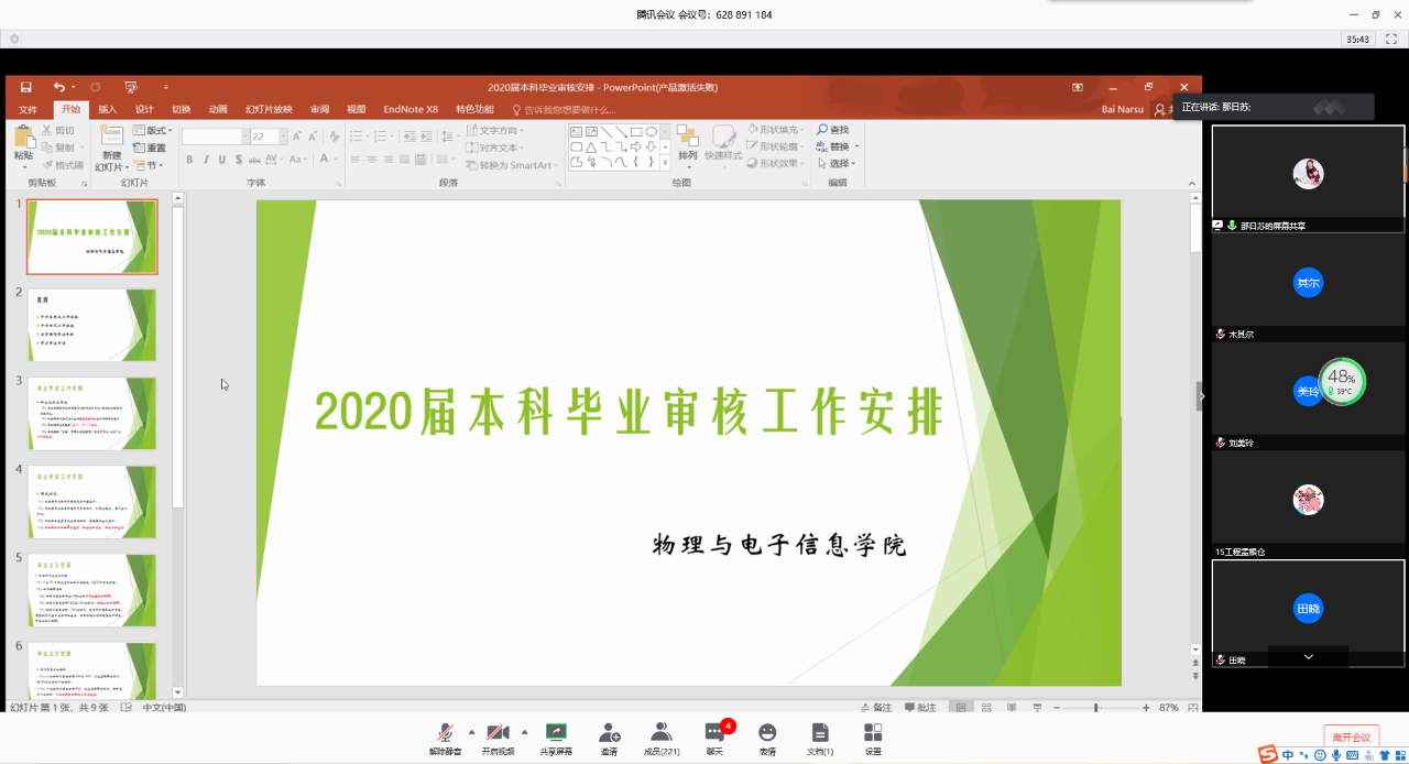 4月6日下午,我院就业工作小组通过腾讯会议网络平台召开2020届本科毕业生毕业审核和就业工作会议。学院领导、各系主任、教务办、学工组、毕业班班主任,以及2020届全体毕业生共计220余人参会
